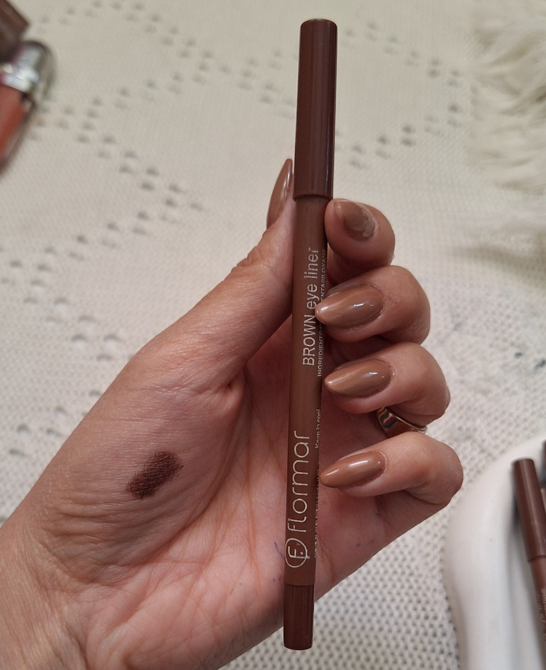مداد قهوه ای فلورمار هم مناسب چشم و هم مناسب لب برای کک و مک هم گزینه خوبیه بسیار نرم و روون پیگمنت بالا